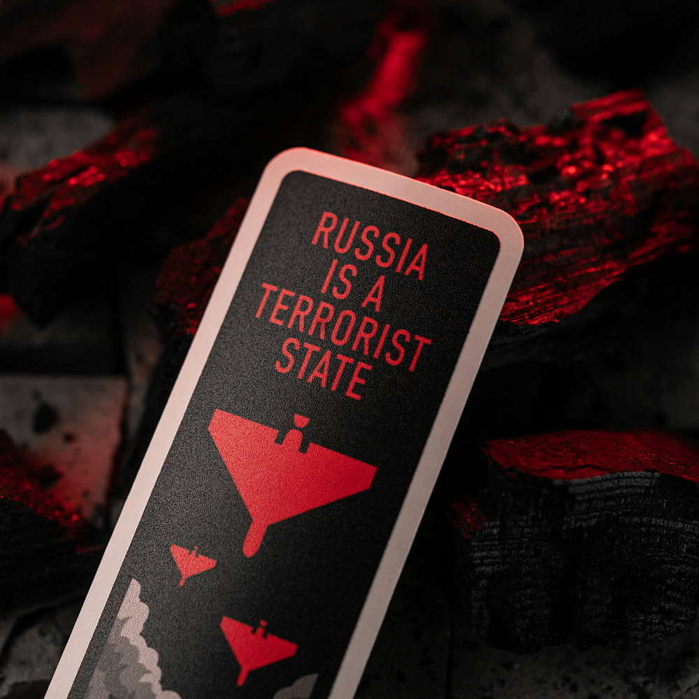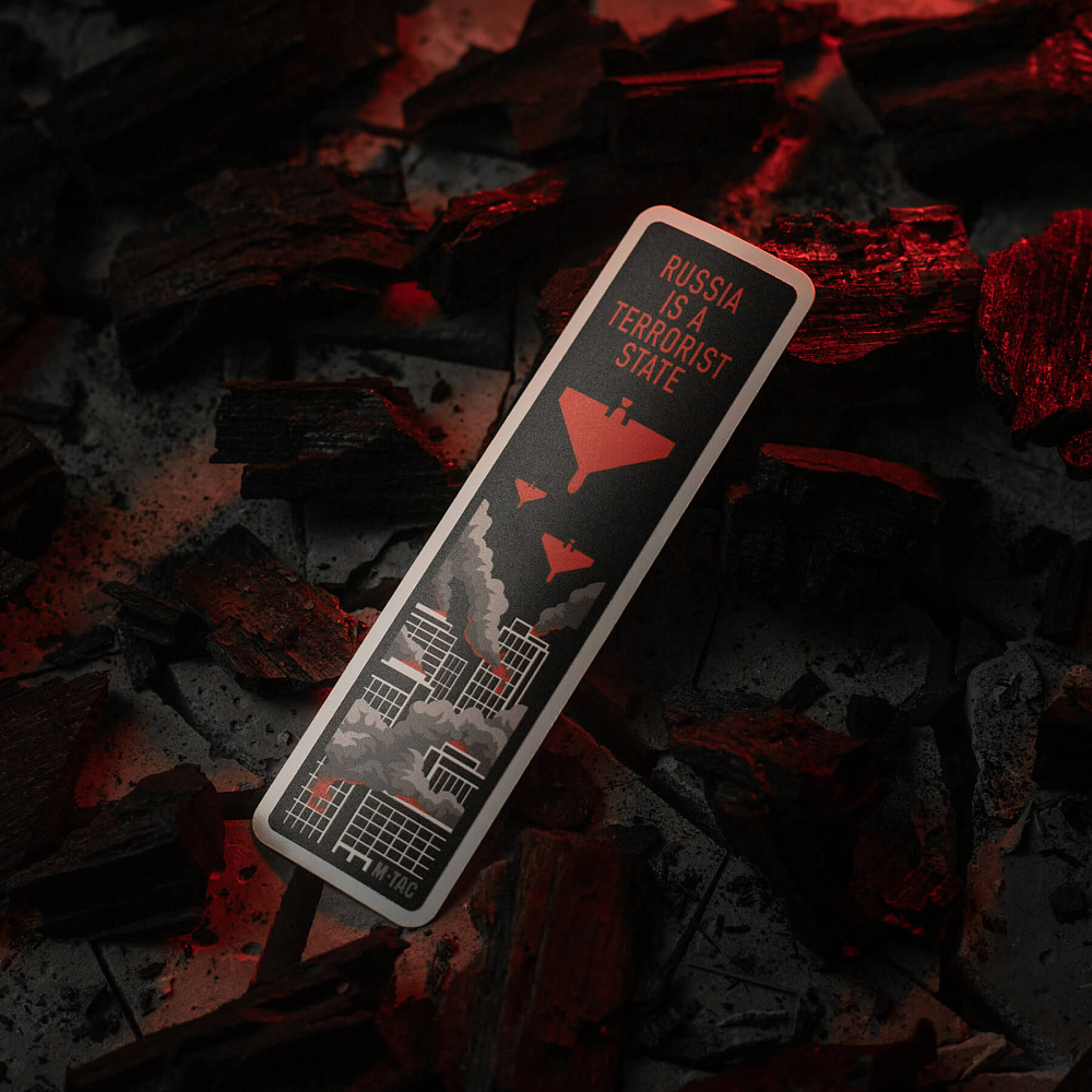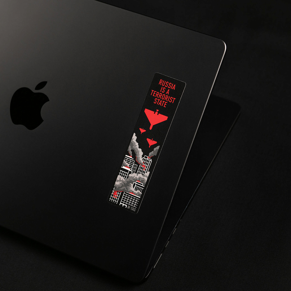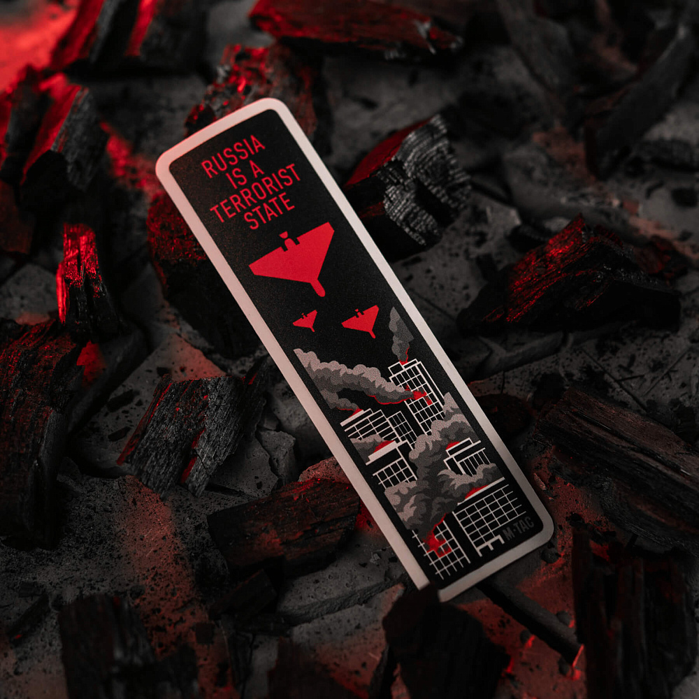 M-TAC НАКЛЕЙКА RUSSIA IS A TERRORIST STATE – маніфест про жорстокість ворога, його байдужість до правил ведення війни та будь-яких законів гуманності.