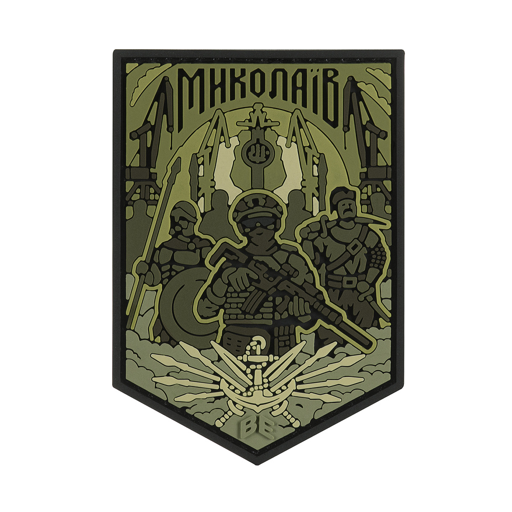 ПВХ патч “Миколаїв” від Brand Element – уособлює незламний характер міста-героя, що стало бастіоном опору на півдні України. У центрі композиції – сучасний воїн, символ стійкості та рішучості, а за його спиною – козаки, що втілюють бойову славу предків. Над ними здіймається грізний силует корабля, нагадуючи про стратегічне значення міста та його морські традиції. Вогняні барви світанку та символіка, що сяє крізь хвилі, підкреслюють силу та волю захисників, які стоять на передовій боротьби за свободу.