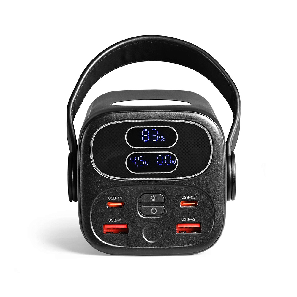 Повербанк TITANUM TPB-WC40-B має ємність 40000mAh і максимальну вихідну потужність PD65W. Цей акумулятор оснащений літій-полімерною батареєю 3.7V, 148Wh, що дозволяє заряджати телефони, планшети, смарт-годинники, ноутбуки завдяки підтримці технології Power Delivery (PD). Повербанк має вбудовану LED-лампу, розташовану на лицьовій частині корпусу, яка може використовуватися в якості підсвітки на дуже близькі відстані. Для активації підсвітки достатньо затиснути на 2 секунди відповідну кнопку на корпусі повербанка. Повербанк має вбудований LED-екран, який при натисканні на кнопку живлення відображає рівень заряду, напругу й потужність в поточний момент. Додатковою перевагою даної моделі є оснащення її ручкою, що полегшує процес транспортування виробу. Розміри виробу – 143х85х75мм, вага – 945г.