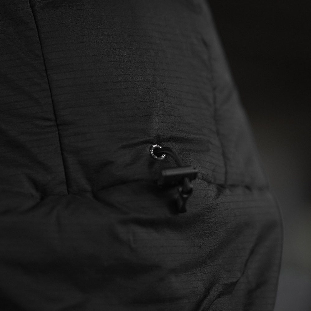 Модель утеплена сучасним наповнювачем Primaloft щільністю 170 г/м², який розрахований на використання в морозну погоду до −20 ℃. Матеріал ефективно акумулює тепло, продовжуючи працювати навіть при контакті з вологою, та швидко висихає. Завдяки поєднанню пухоподібної м’якості й міцності синтетичних волокон куртка залишається легкою, теплою та комфортною під час активної експлуатації.