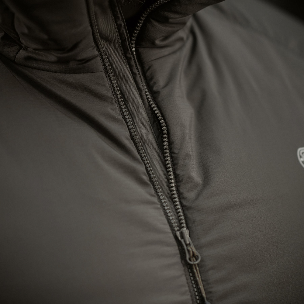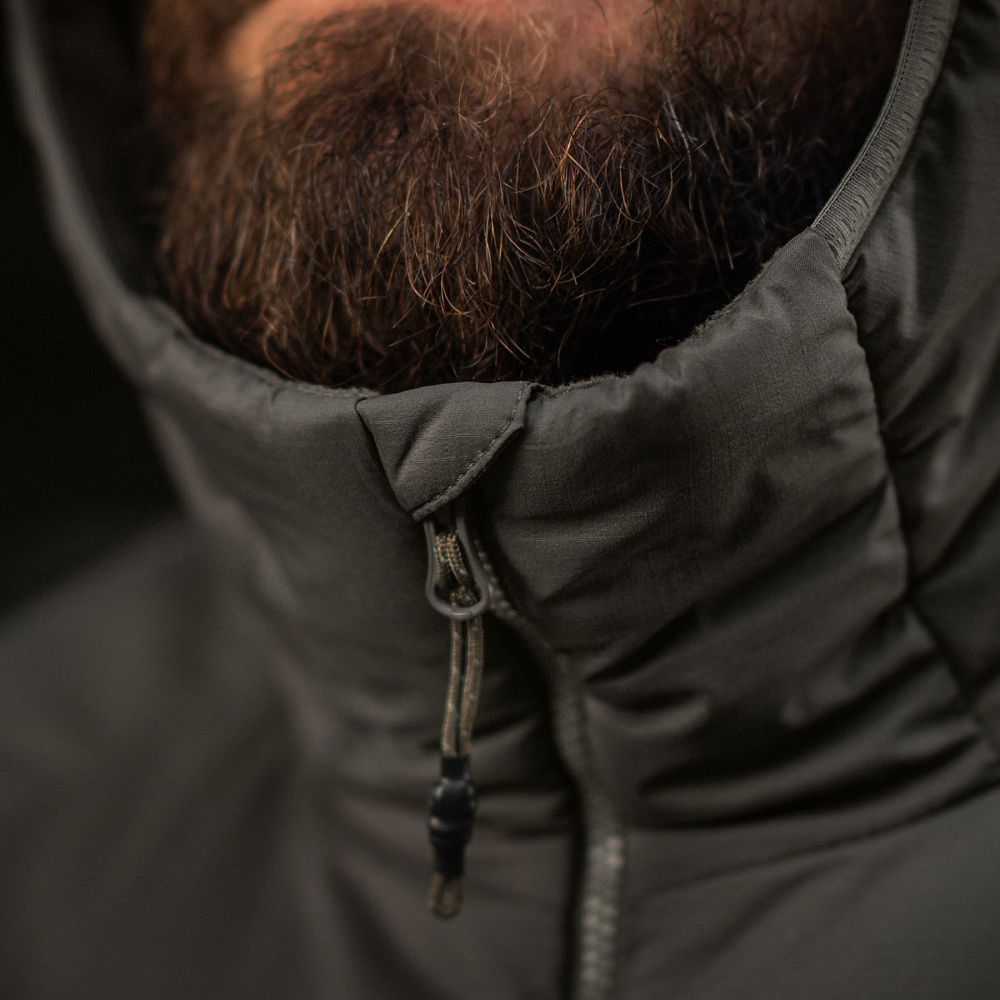 Модель утеплена сучасним наповнювачем Primaloft щільністю 170 г/м², який розрахований на використання в морозну погоду до −20 ℃. Матеріал ефективно акумулює тепло, продовжуючи працювати навіть при контакті з вологою, та швидко висихає. Завдяки поєднанню пухоподібної м’якості й міцності синтетичних волокон куртка залишається легкою, теплою та комфортною під час активної експлуатації.