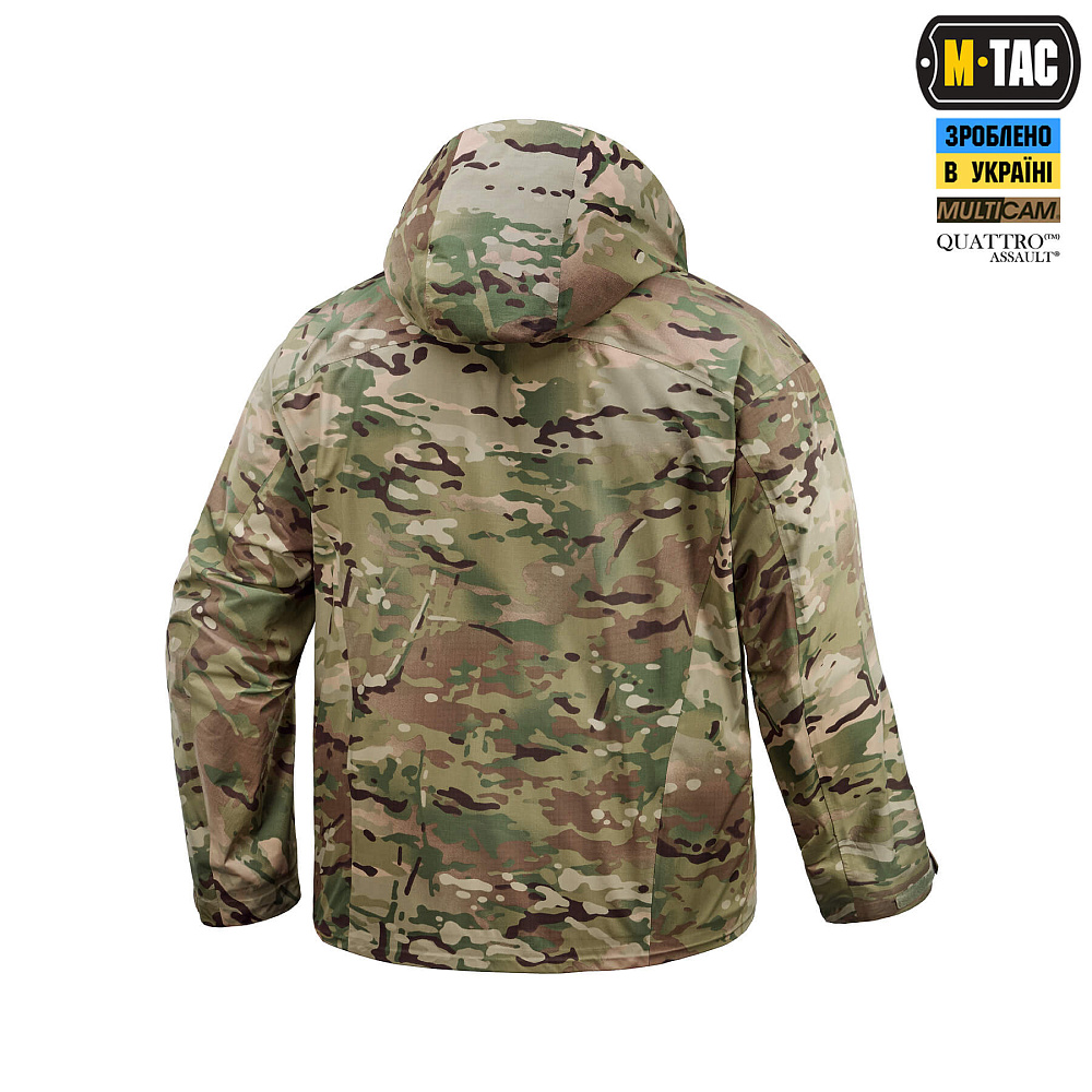 Куртка виготовлена з високоякісного тришарового ламінованого матеріалу QuattroTM Assault®, спеціально розробленого для тактичного використання у складних погодних умовах. Дана мембрана має показники повітропроникності та водостійкості 20000x20000, тож здатна відмінно витримувати сильні зливи та тривале перебування у вологих умовах, при цьому відмінно відводячи її від тіла, зберігаючи терморегуляцію.