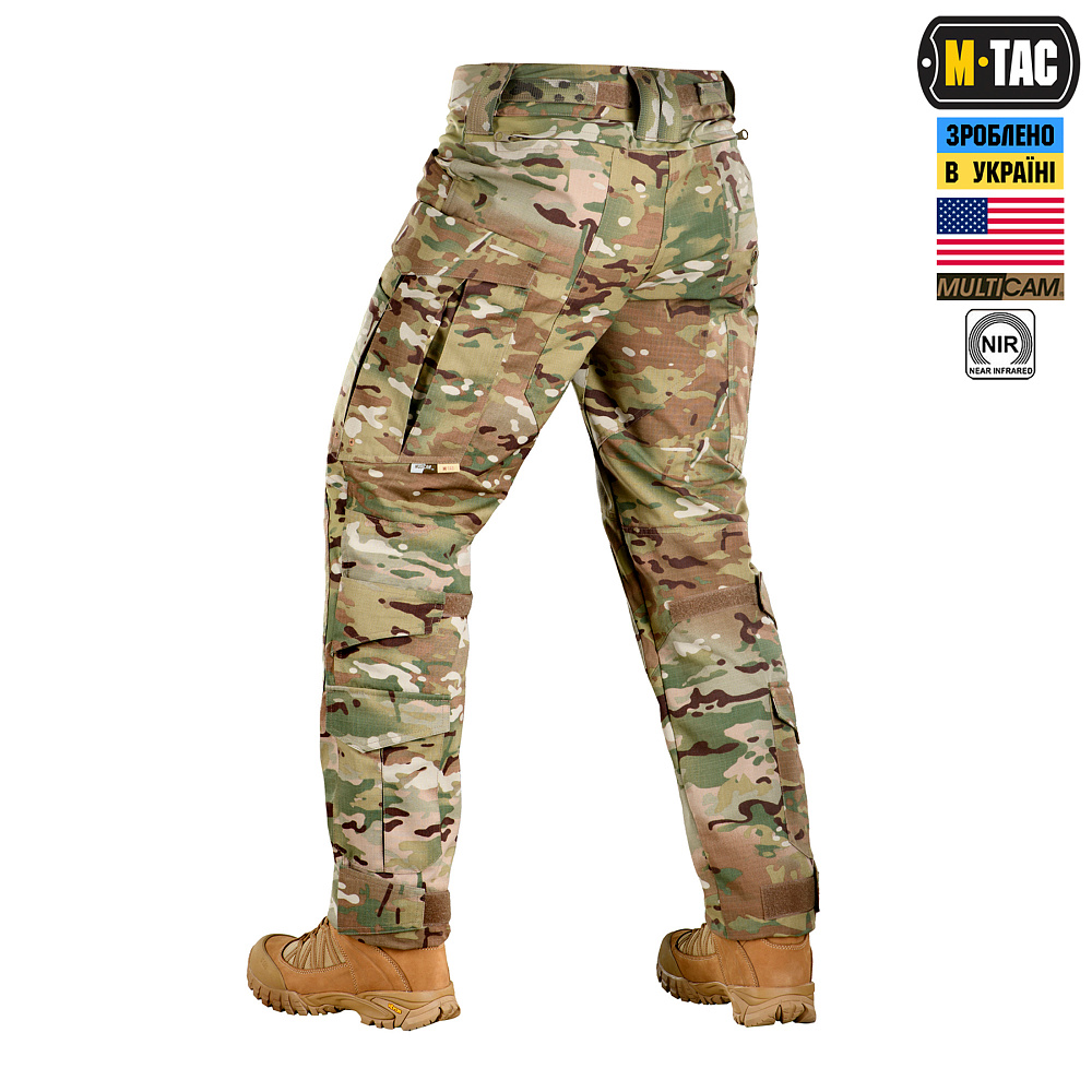 - Оригінальна тканина Crye Precision Multicam®, з комплексною обробкою, яка складається з: -- NIR просочення - знижує здатність матеріалу відбивати світло в інфрачервоному спектрі; -- просочення Teflon - захищає тканину від вбирання бруду і води. - Вставки з еластичного матеріалу в поясі, в районі бічних брючних кишень, а також в паху, на попереку і навколо коліна - для свободи рухів. - Задня частина брюк, найбільш схильна до зносу через тертя, тому посилена додатковим шаром тканини. - Петлі під ремінь і утяжки поясу виконані зі стропи Murdock webbing. |