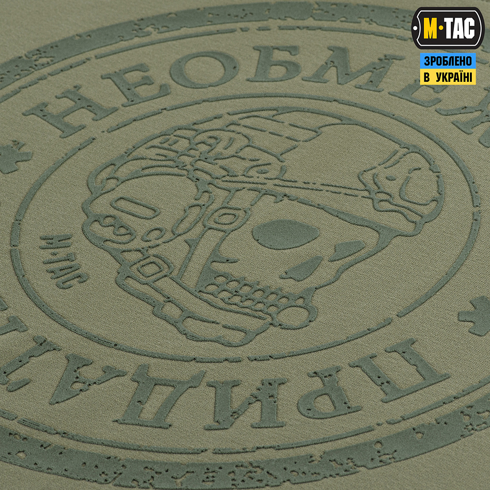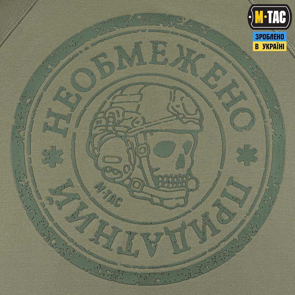 На реглані зображений череп у військовій амуніції та напис “необмежено придатний”, що уособлює силу та непохитність духу хлопців, які навіть в тяжких умовах продовжують до кінця виконувати великий обсяг військових завдань.