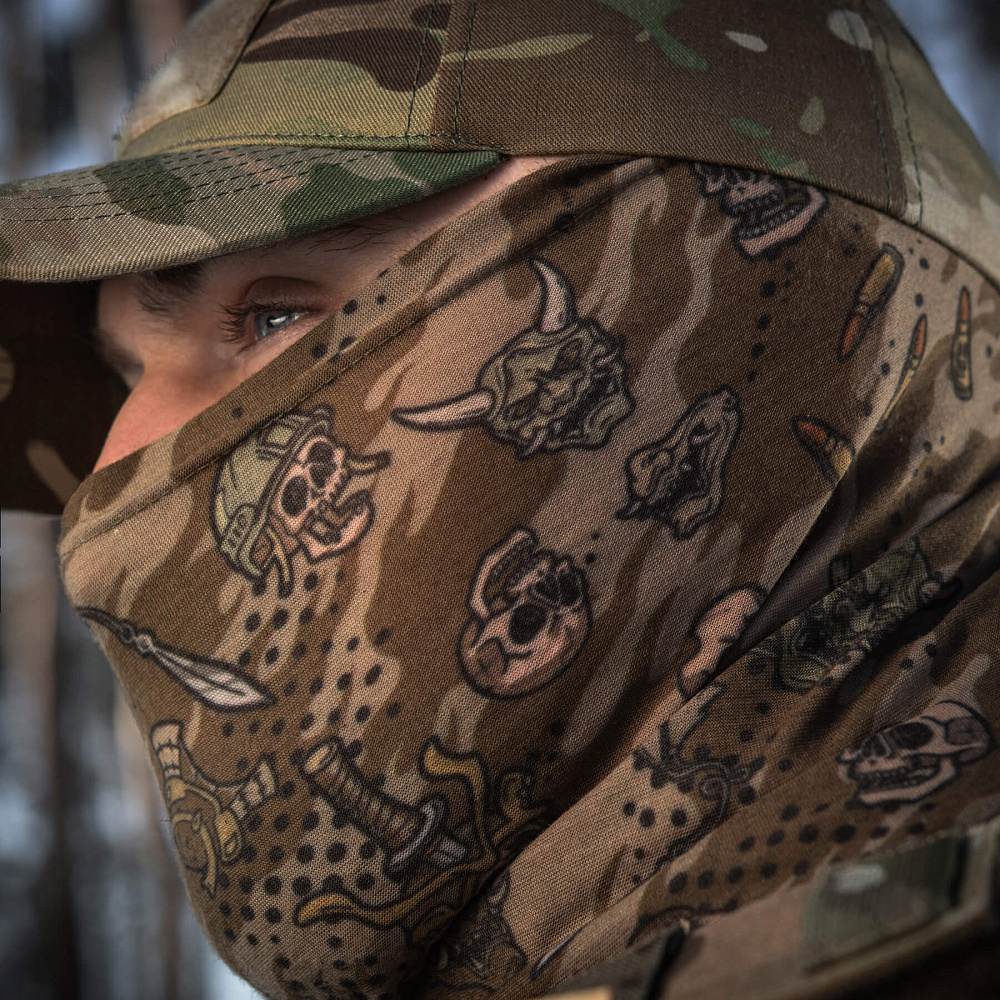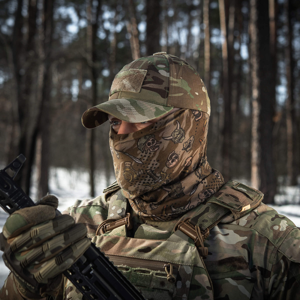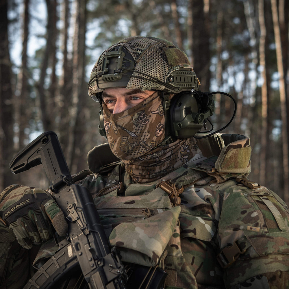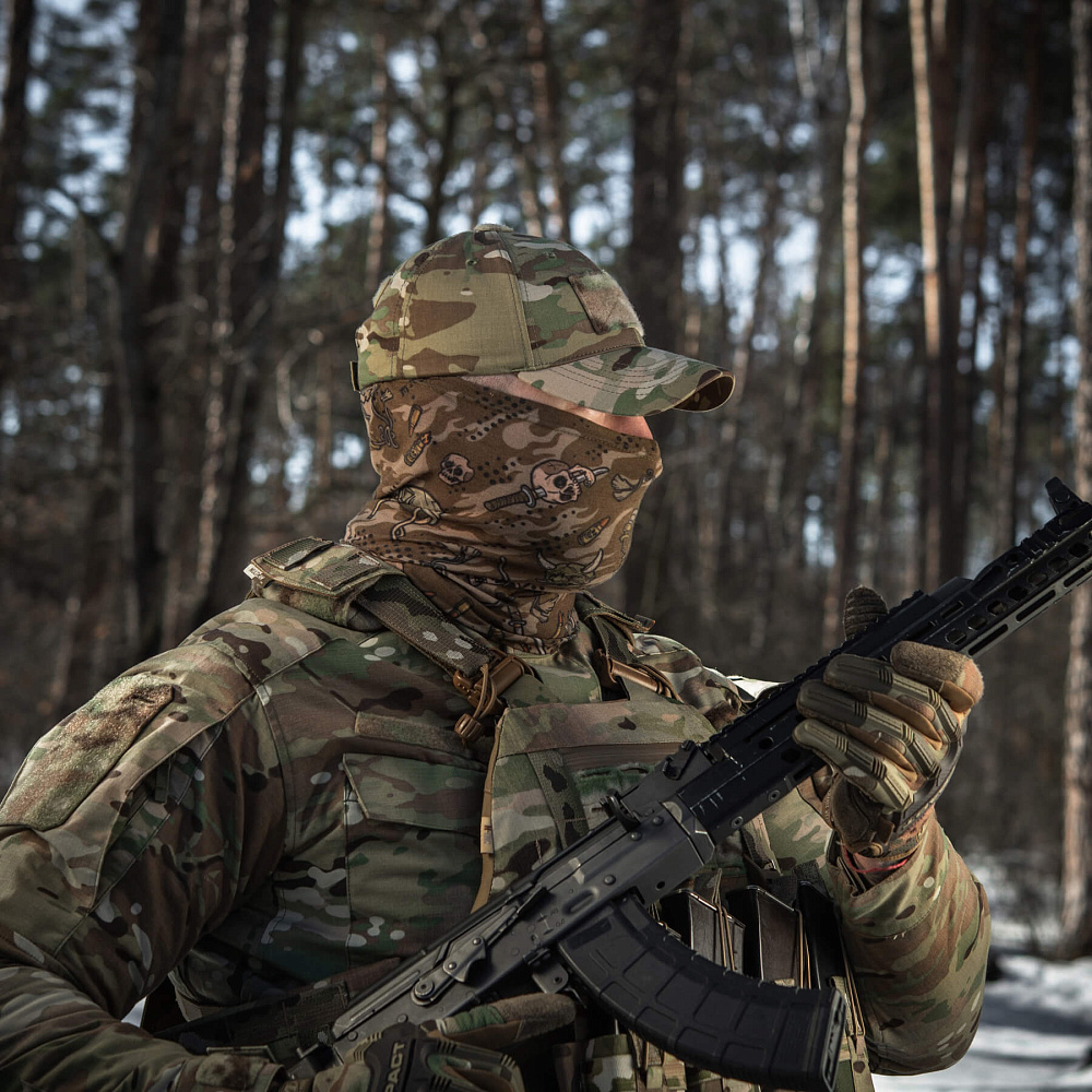 Конструкція шарфа-труби дозволяє повністю закрити обличчя, залишаючи відкритими лише очі, або ж використовувати її як напівмаску або шарф. Така варіативність дозволить підвищити комфорт та зручність під час виконання бойових завдань.