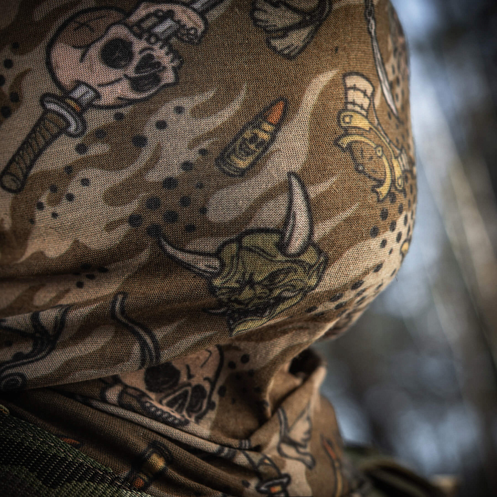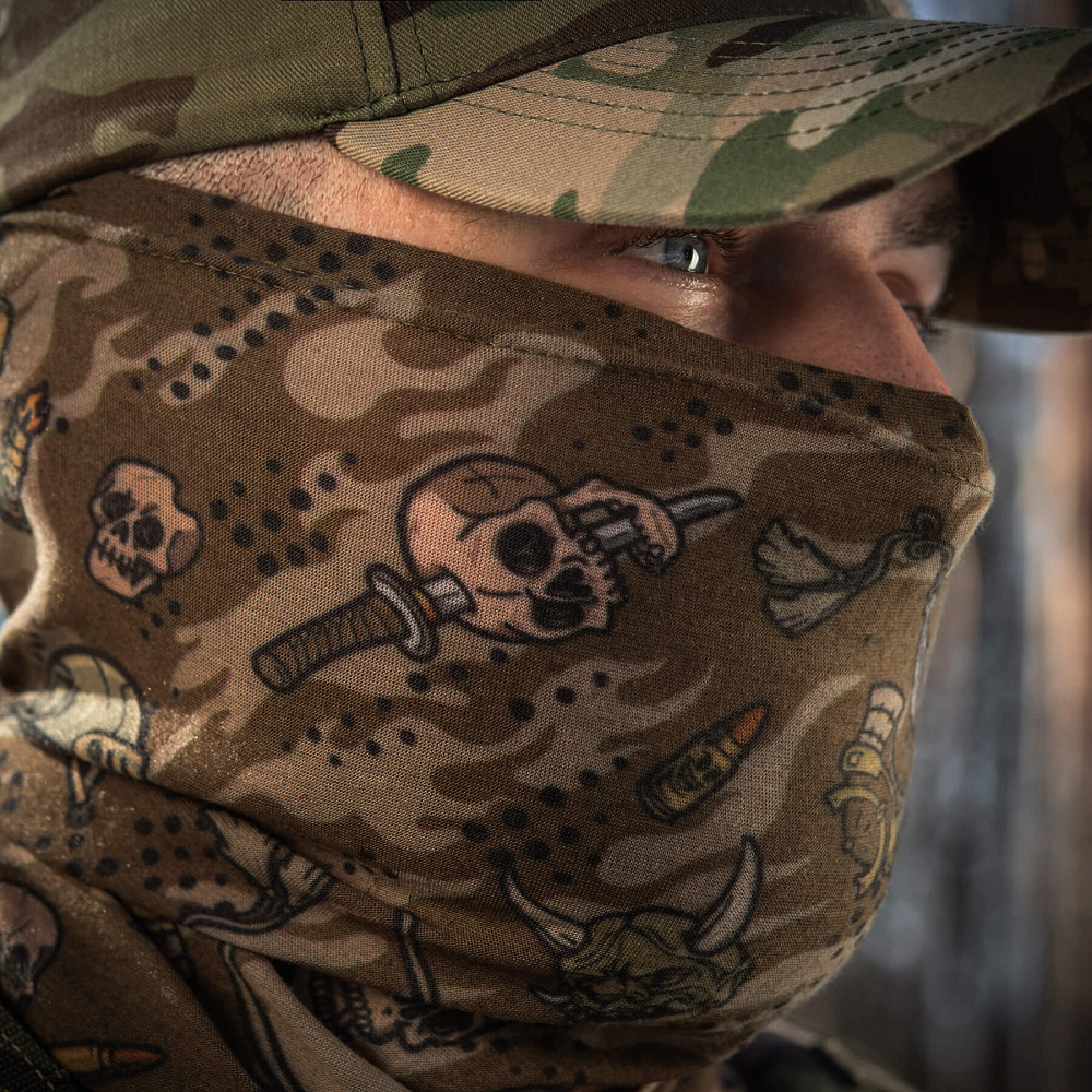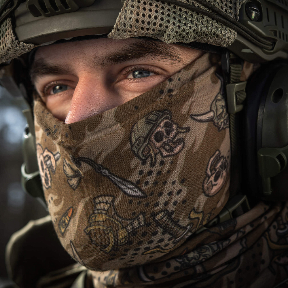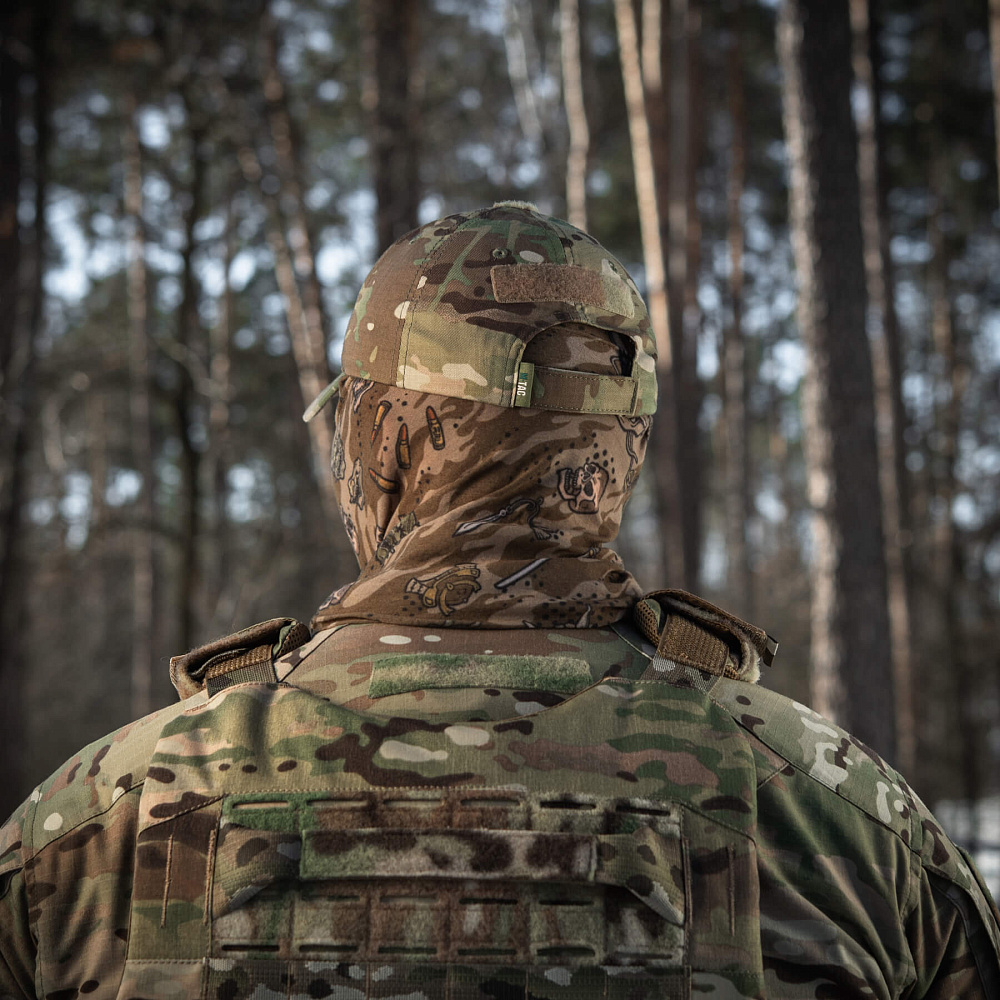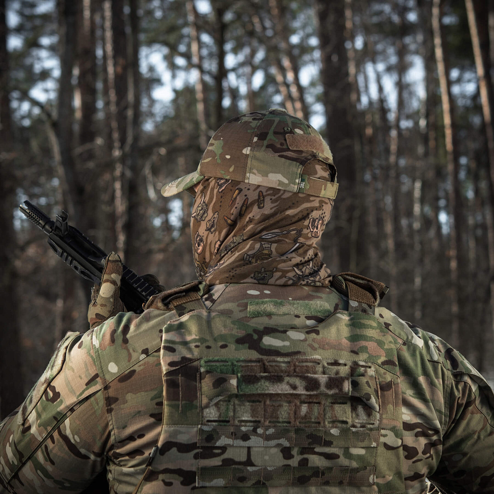 Конструкція шарфа-труби дозволяє повністю закрити обличчя, залишаючи відкритими лише очі, або ж використовувати її як напівмаску або шарф. Така варіативність дозволить підвищити комфорт та зручність під час виконання бойових завдань.