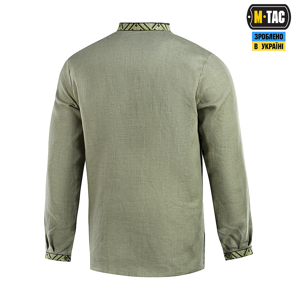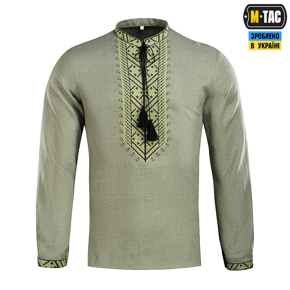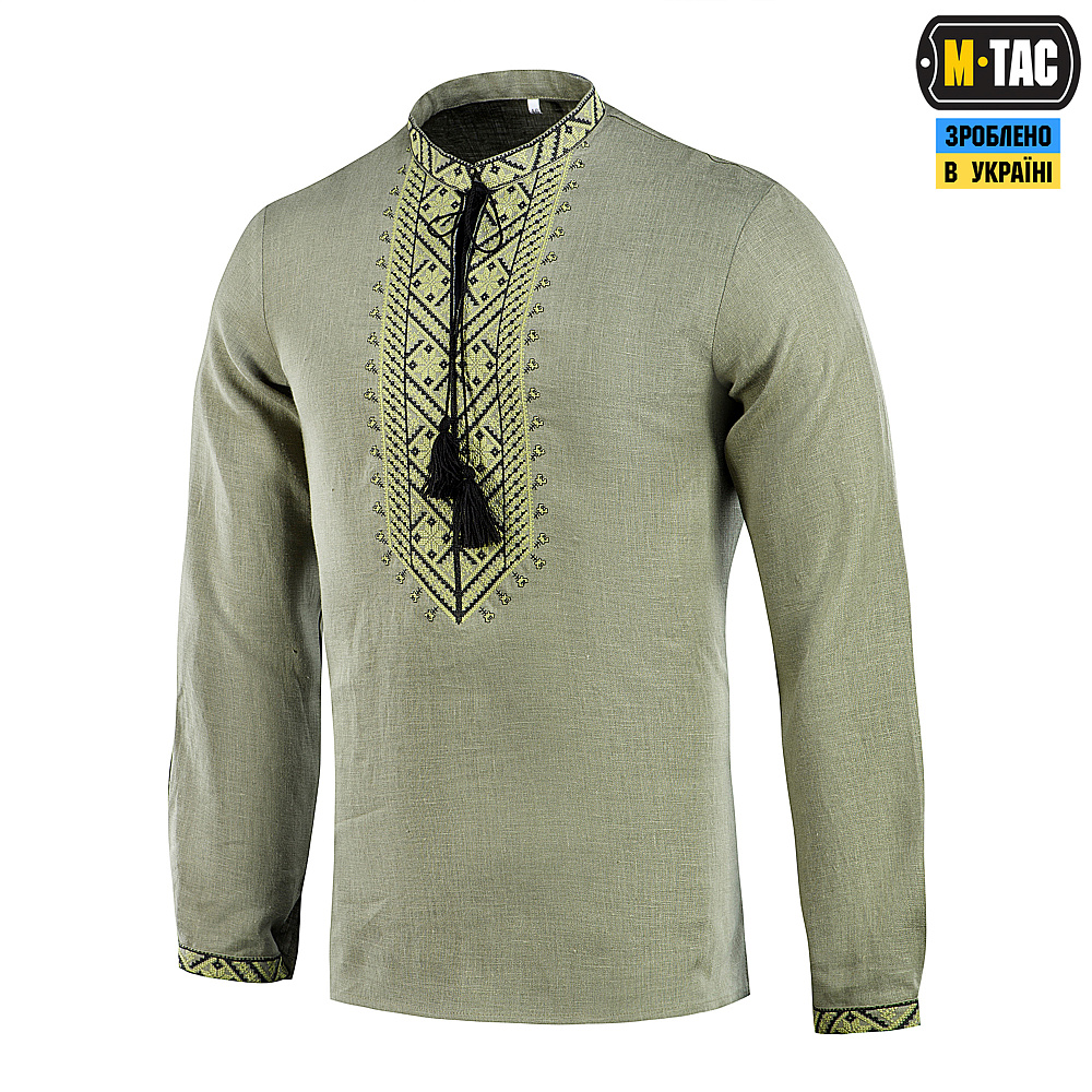 Саме в такому ракурсі бренд М-ТАС і представляє свою новинку – вишиванку з 100% льону в кольорі олива.