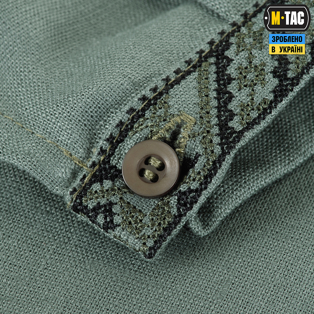 Вишиванка – вишуканий символ України, дух національної ідеї та єдності. Це стильне доповнення в гардеробі, яке несе значно глибший сенс, ніж просто модна тенденція. Сучасна тактична вишиванка від M-Tac подарує Вам відчуття елегантності та впевненості в собі. Пошита з 100% пропареного льону та забезпечить легкість і комфорт. Матеріал попередньо рre-washed і не сідає після прання. Особливий акцент дизайнери бренду M-Tac втілили в машинній вишивці хрестиком, що підкреслює її унікальність та оригінальність. Геометричний орнамент у поєднанні з інноваційним дизайном надає сучасності зовнішньому вигляду виробу. Її можна поєднувати як з класичним одягом, так і з повсякденним. Ідеально підходить до джинсів або штанів.