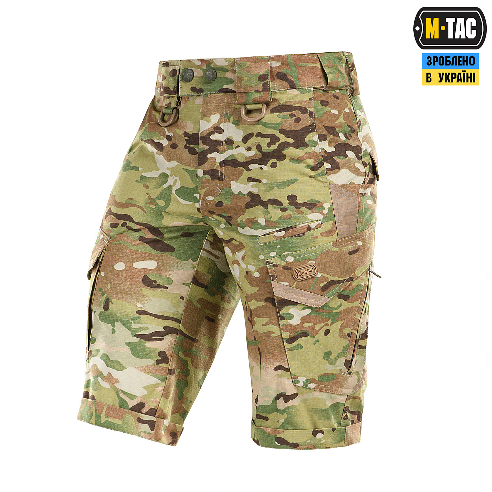Вітчизняний бренд M-Tac намагається вносити інноваційні технології на ринок. Пошито шорти з легкої, однотонної тканини рипстоп, з водо- і брудозахисним просоченням Teflon. Склад: бавовна, поліестеру і спандексу. Тканина з вмістом поліестеру і бавовни приємна до тіла, добре тримає колір і відрізняється високою міцністю.