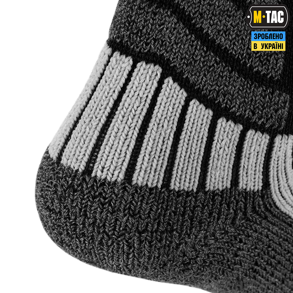 Подовжені зимові шкарпетки від бренду М-Тас – один із найпопулярніших товарів для чоловіків. Пошиті з високоякісного матеріалу (35% вовна, 40% акрил, 20% поліамід, 5% еластан), що приємний на дотик, еластичний і забезпечує відмінну терморегуляцію, в результаті якої шкарпетки не парять. Вовна, що є в складі тканини, має високі теплозберігаючі властивості та приємна до тіла. Конструктивною особливістю шкарпеток є текстурні термозони та інтегровані системи каналів для швидкого випаровування зайвої вологи. Щільна резинка добре фіксує їх на нозі, не дозволяючи шкарпеткам скручуватися або сповзати. Анатомічна форма гарантує комфортне носіння у взутті та перешкоджає натиранню. Шкарпетки відмінно підійдуть для повсякденного використання та сприятимуть максимальному комфорту при ходьбі або тривалому перебуванні у взутті.