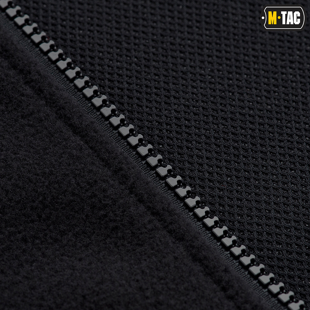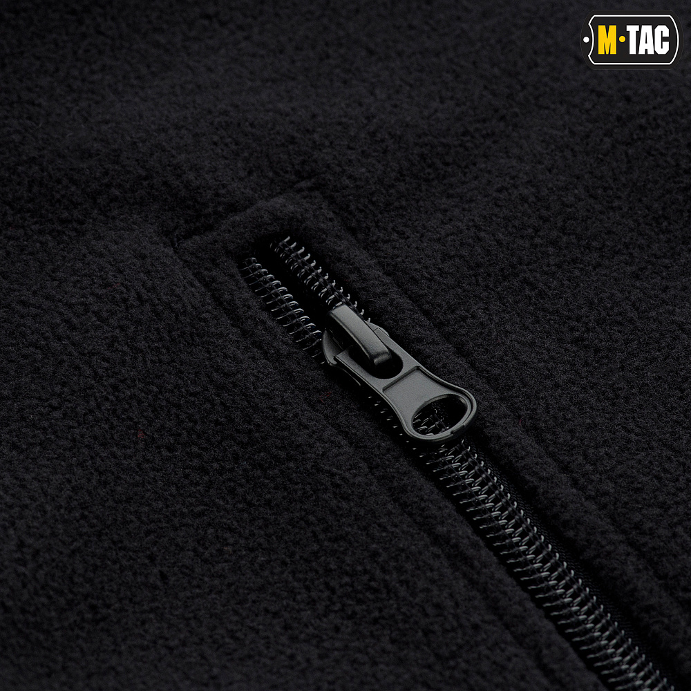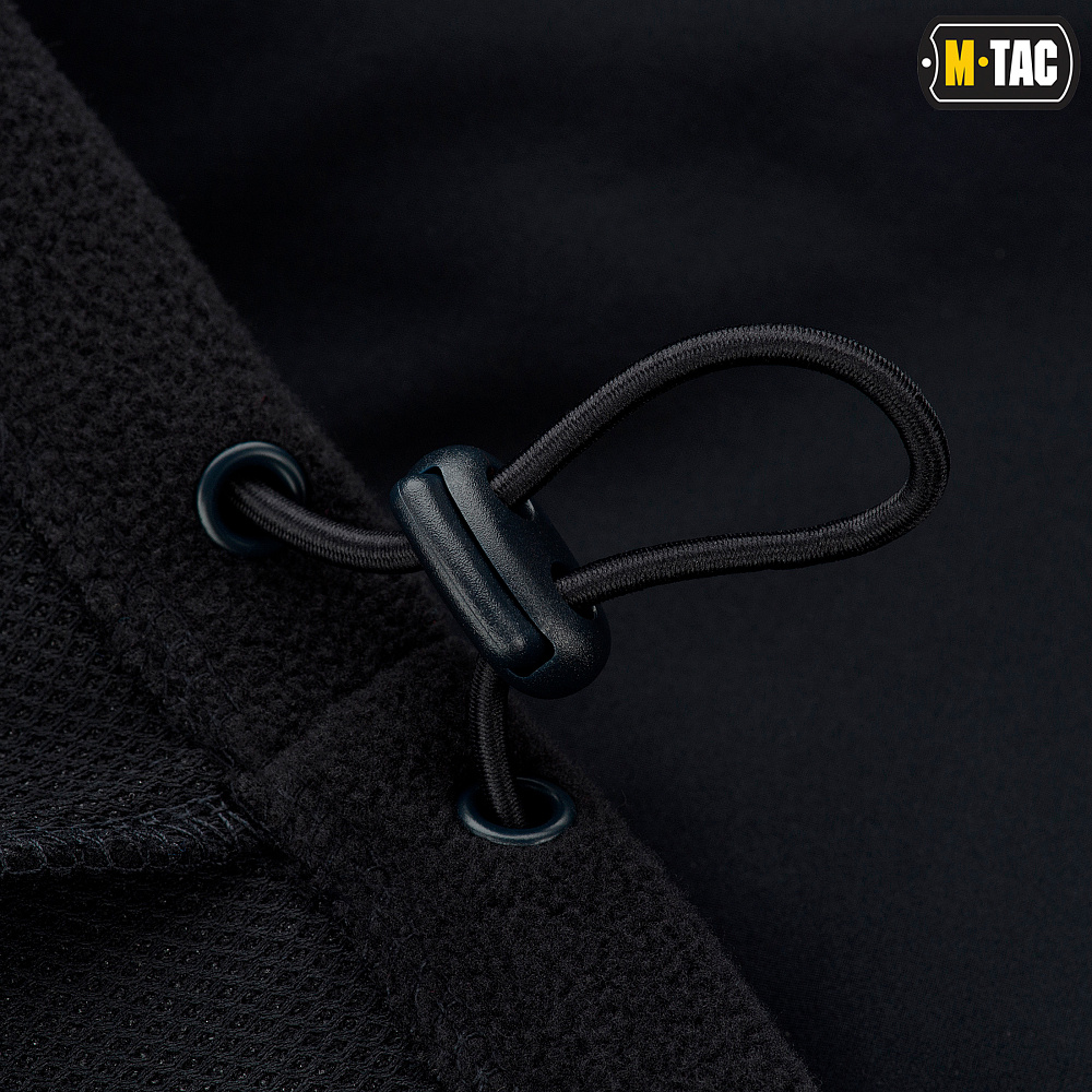M-TAC куртка Soft Shell з підстібкою виготовлена з мембрани, яка захищає від негоди. У даній моделі виробник додав додатково знімну флісову підстібку, яка кріпиться на блискавці (можна носити як окремий предмет одягу). Усередині тонкий фліс. Динамічний крій не обмежує рухів. Прихований в комірі капюшон має регулювання через кишені на грудях. Має дві ідентифікаційні панелі, які, в залежності від ситуації, можна дістати або заховати. У куртці є одна порожня панель, завдяки якій є можливість вишити або надрукувати потрібні оператору назви. Фахівці бренду M-Tac додали систему, яка дозволить зручно і швидко дістати зброю або інші предмети, котрі знаходяться на поясі. Дана система дозволить одним плавним рухом дістати зброю, електрошокер, або інші аксесуари, що помітно впливає на час реакції в небезпечних випадках. Передня блискавка виготовлена компанією YKK. Блискавка якісна і виконує свою функцію без будь-яких видимих проблем.