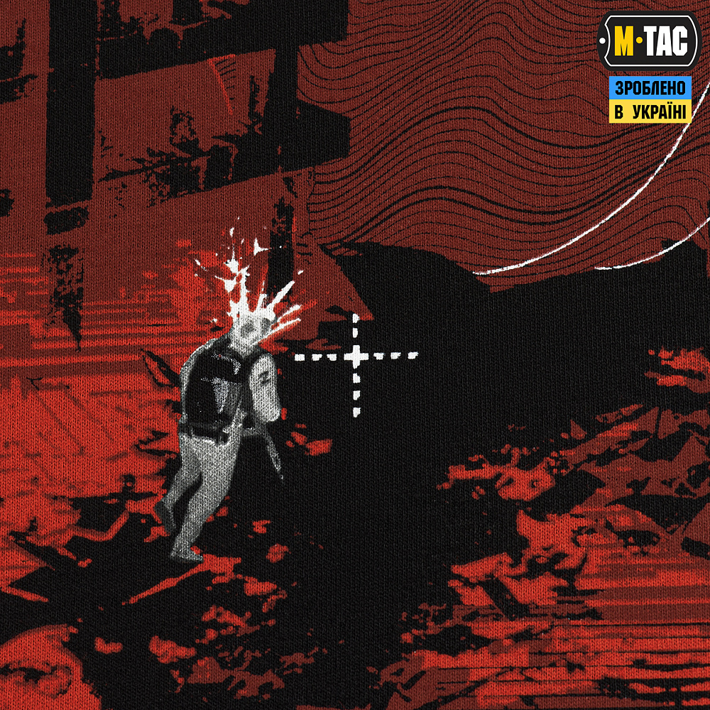 Принт футболки зображує останній епізод існування ворога, зафіксований тепловізійним стрілецьким прицільним комплексом TSA-7. Один постріл – одне влучання: вирішальна мить породжена невблаганною точністю.