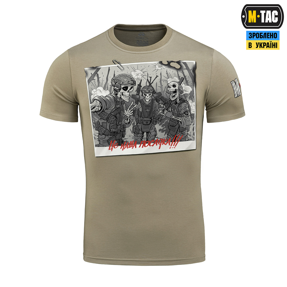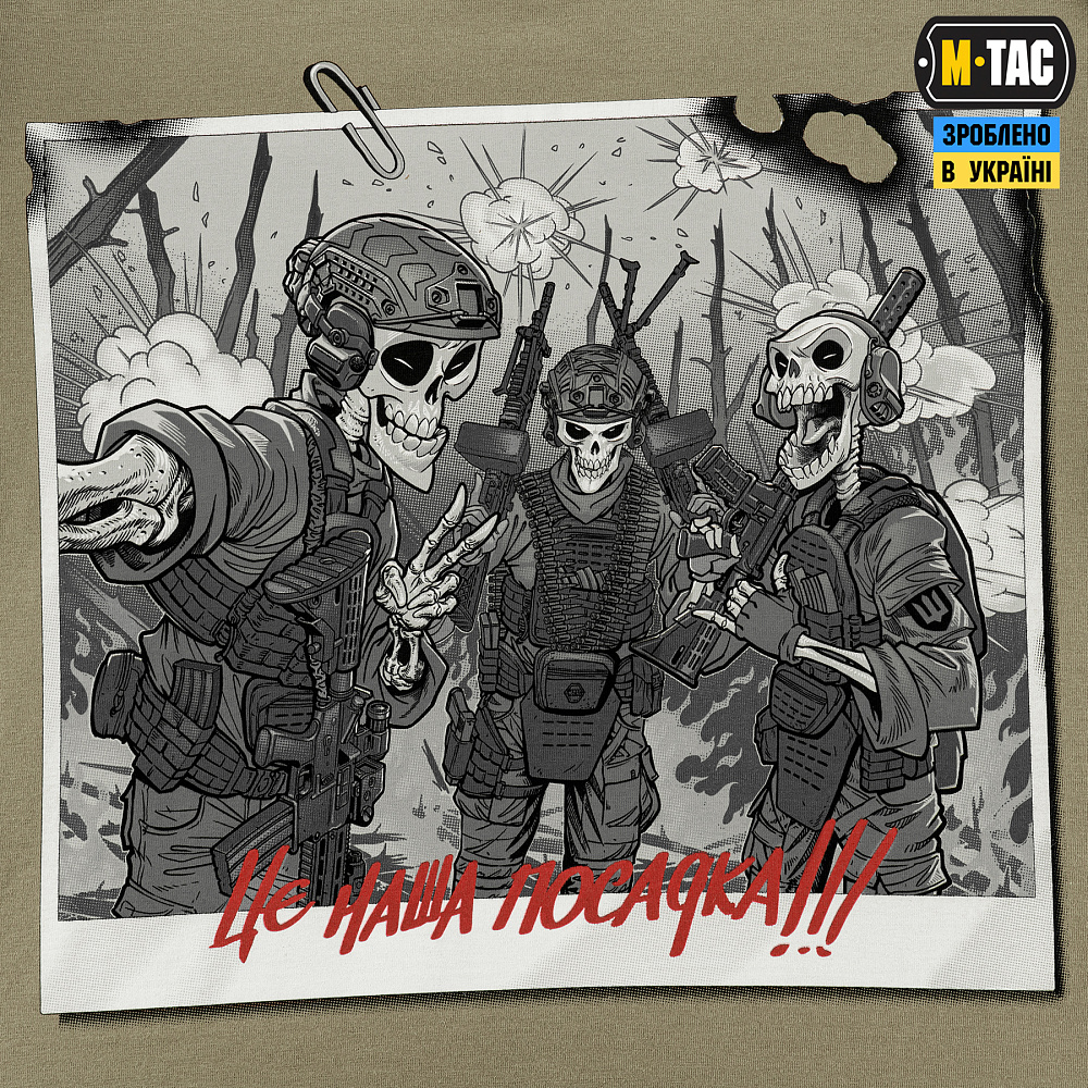 M-Tac футболка Це наша посадка — це поєднання глибокого змісту, якісного матеріалу та зручного крою. Вона створена як одяг з історією на згадку про незламність і побратимство, зафіксовані в реальному фронтовому кадрі.