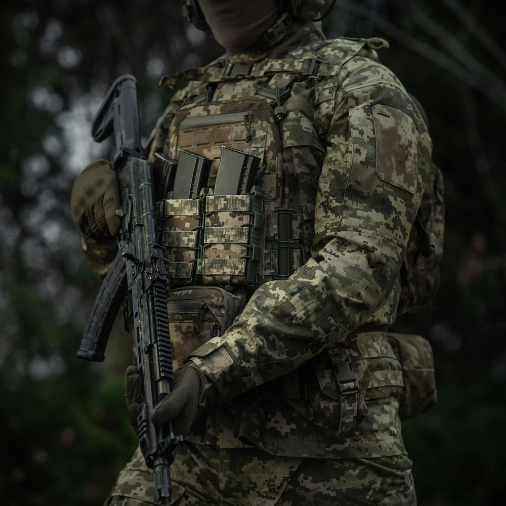 Підсумок має відкриту конструкцію, що забезпечує швидкий доступ до магазина та не обмежує рухи. Він фіксує магазин під кутом та зберігає форму завдяки поєднанню жорстких і гнучких елементів.