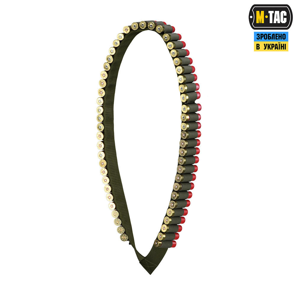 Бандольєра (від ісп. Bandolera – плечовий ремінь) – це пристосування для боєприпасів, яке носиться на ремені через плече. Виріб від бренду М-ТАС являє собою патронташ, оскільки має характерну для нього конструкцію.