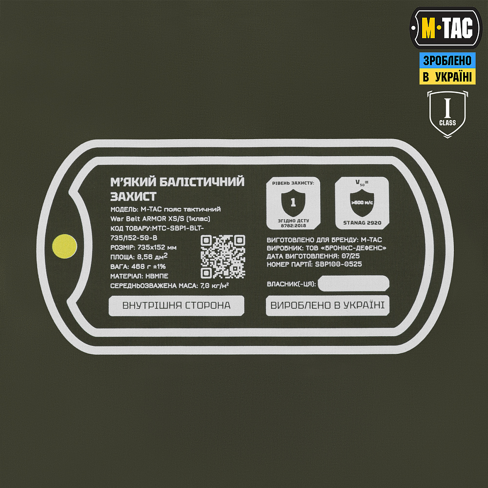 M-TAC БАЛІСТИЧНИЙ ПАКЕТ 1 КЛАС (BRONYX) В ПОЯС ТАКТИЧНИЙ WAR BELT ARMOR – створений для вашого захисту під час виконання широкого спектра завдань.