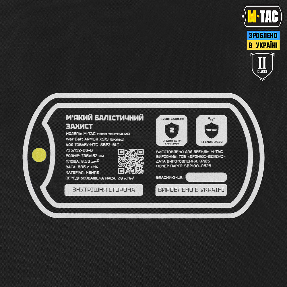M-TAC БАЛІСТИЧНИЙ ПАКЕТ 2 КЛАС (BRONYX) В ПОЯС ТАКТИЧНИЙ WAR BELT ARMOR – створений для вашого захисту під час виконання широкого спектра завдань.